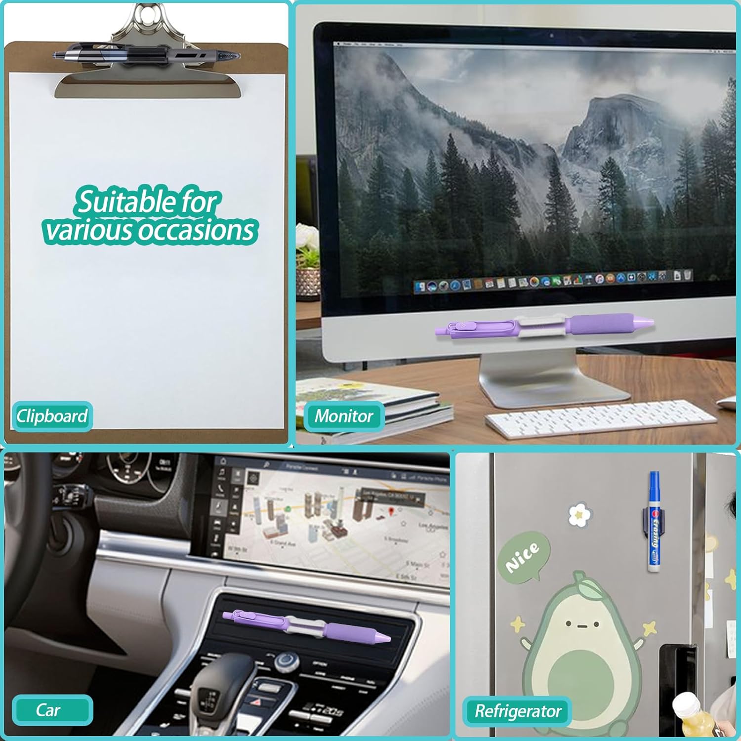 - Small Body Big Role: The wall pen holder is small, but it does a lot. This pen holder clip not only keeps the study/work space organized and comfortable, but also keeps the pens you want at reach where you want them to be, ensuring easy access and making learning or work more efficient. It can be sticked on desk, whiteboard, folder, clipboards, computer, refrigerator, wall and other smooth and flat object surfaces. Suitable for home, school, office, gym, car, hospital, bank, bar and so on.