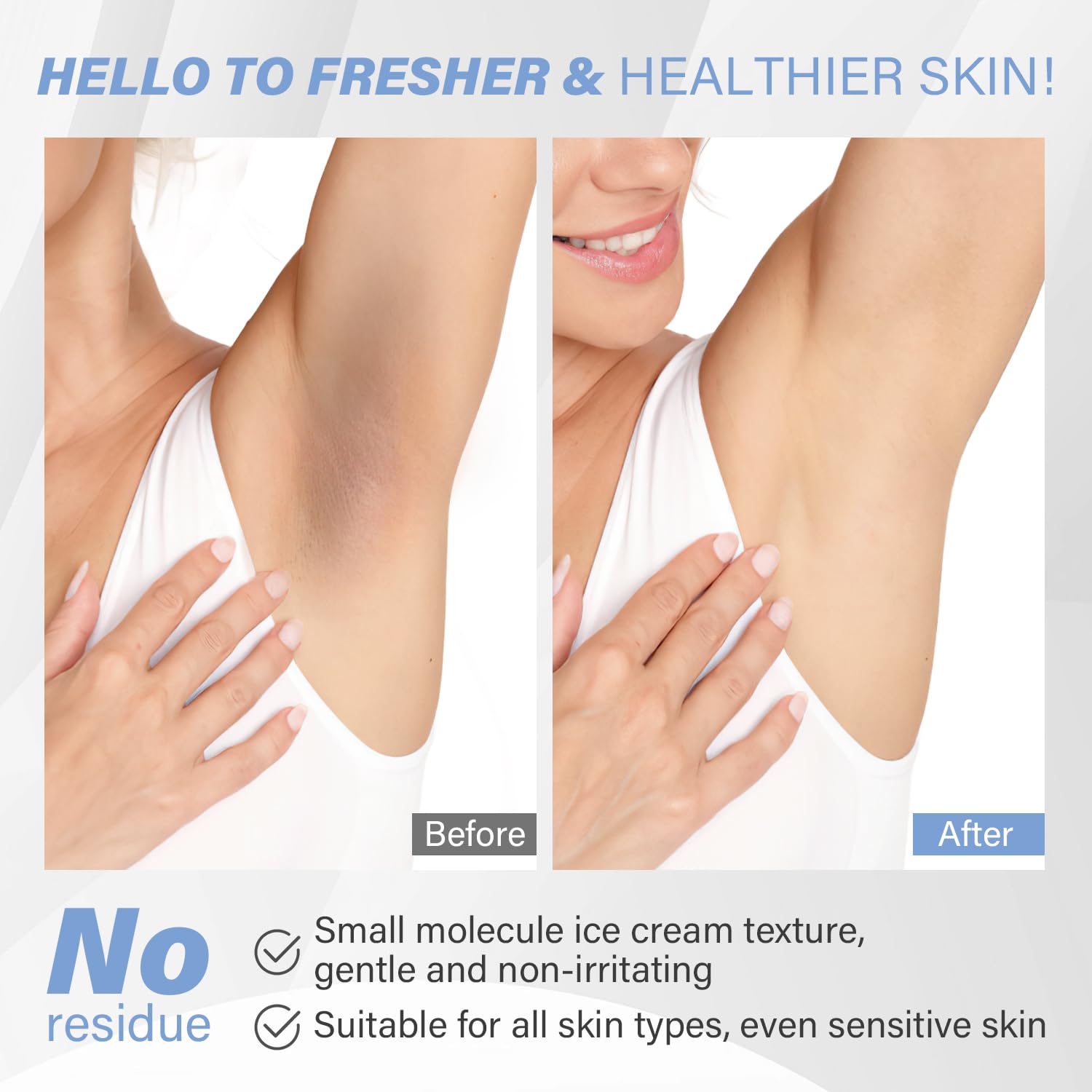 - 【Natural and Safe Body Scrub】 Refresh without hurting the skin. GMO free, sulfate free, aluminum free, phthalates free, cruelty free. Our underarm scrub is made with a small molecule ice cream texture that is gentle and non-irritating. It contains walnut shell powder, charcoal powder, aloe vera, mint and sodium hyaluronate. It moisturizes your skin while exfoliating, leaving your skin feeling refreshed and hydrated