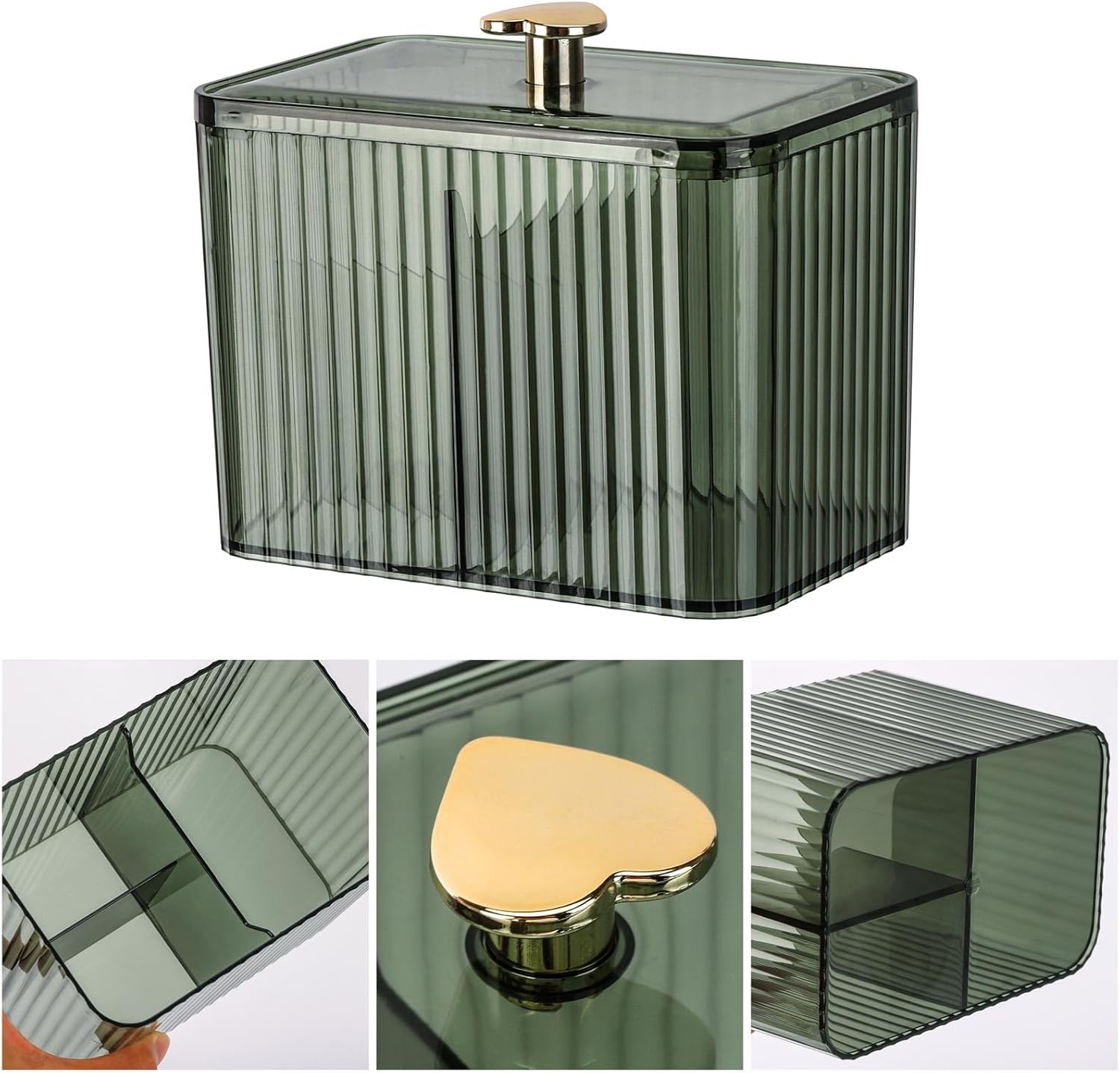 - 【Modern Design】 This container has lovely gold heart handle, elegant non-slip wavy bottle body, dustproof, easy to open and close.