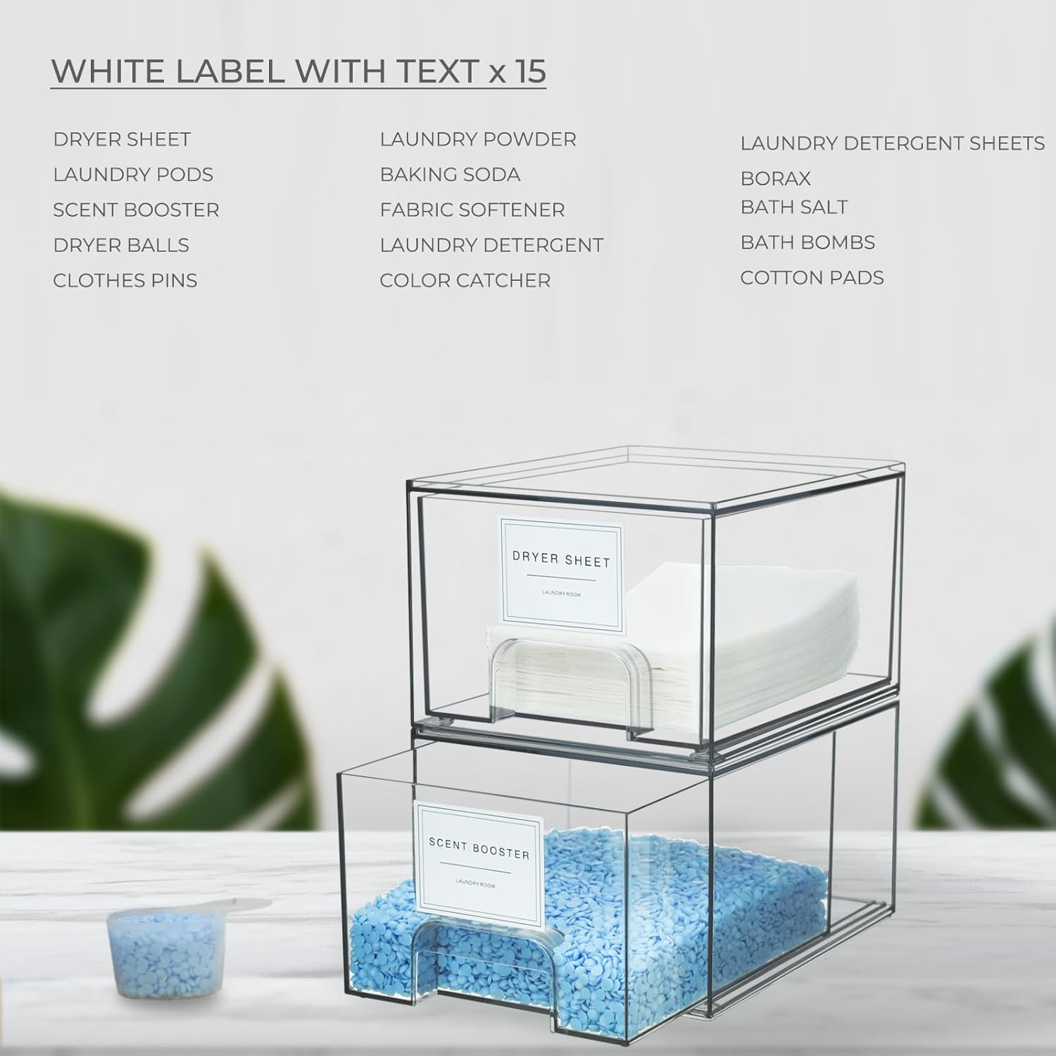 2 Pack Laundry Room Organization and Storage Containers with Labels, Stackable Clear Plastic Storage Drawers for Dryer Sheet Holder, Laundry Pods Container, Laundry Room Decor for Organizing