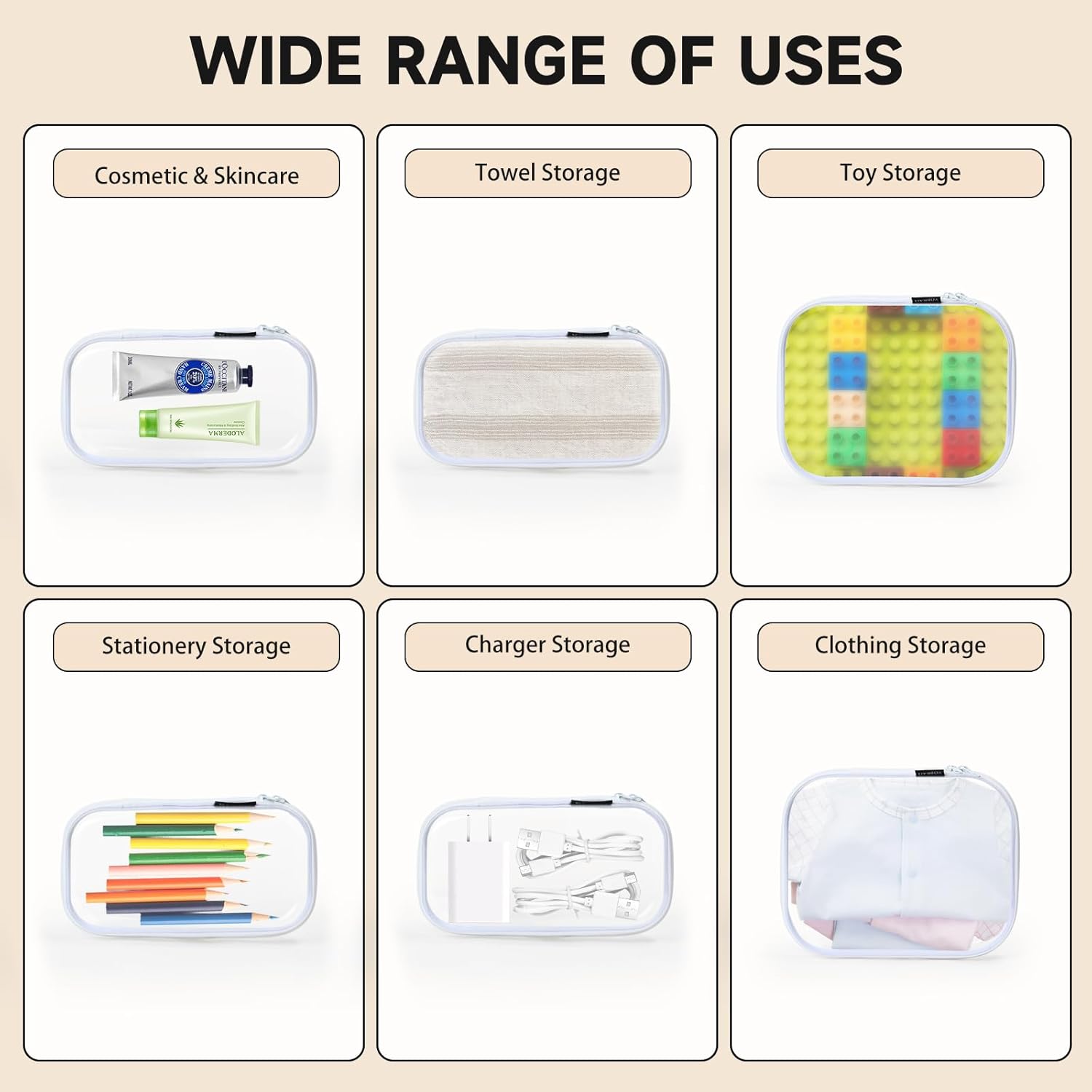 3 Pack Clear Hard Shell Zipper Case - Clear Waterproof Cosmetic Bag with Zipper, Kid's Toy Storage Organizer Bins, Charging Cables, creative journaling, painting brushes, Threads,Sketch Supplies