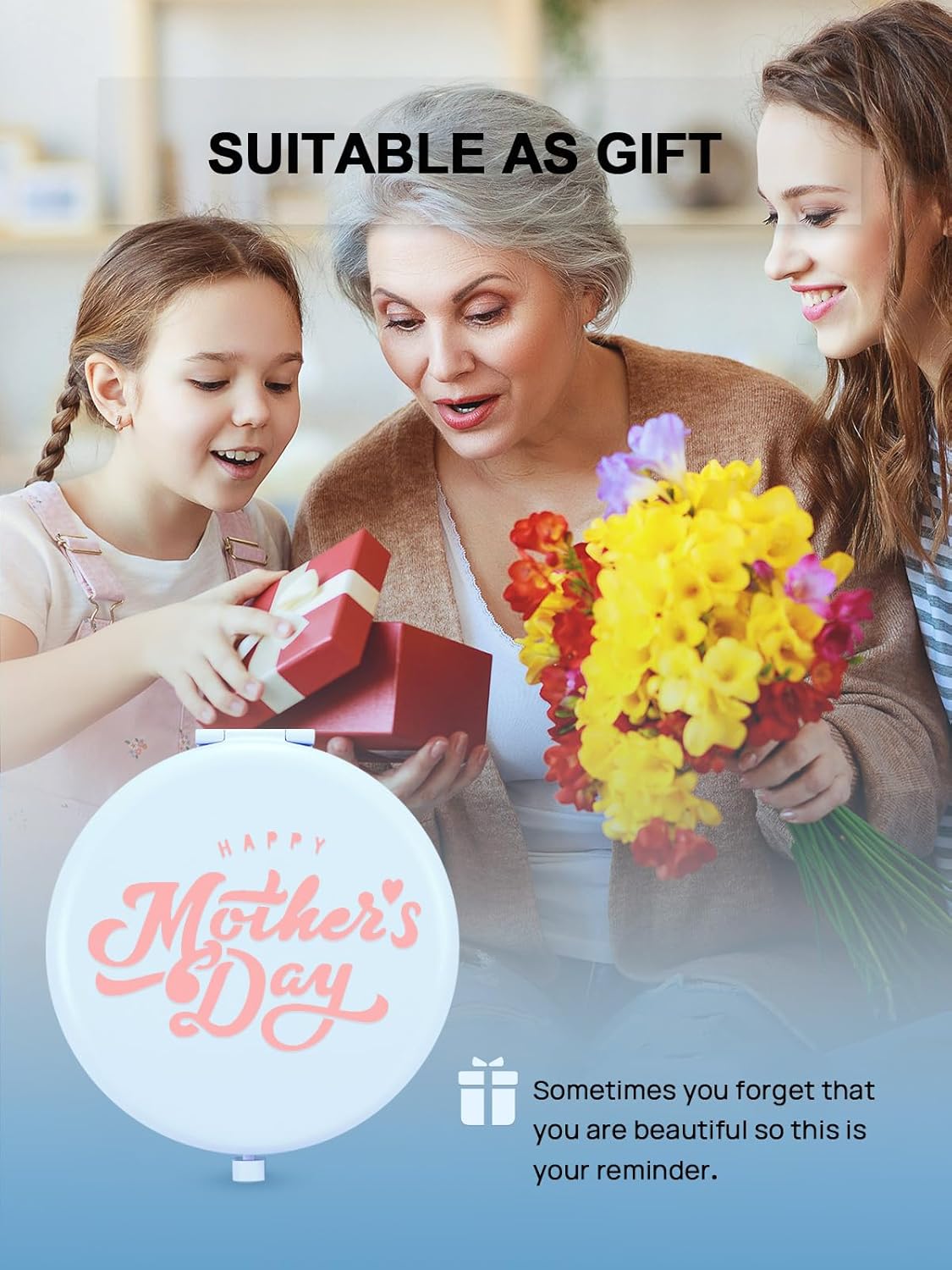 - Makeup Companion: A delightful compact makeup mirror that your friends and family will love. Its compact design adds convenience to their beauty routine, making it an essential accessory for on-the-go touch-ups.