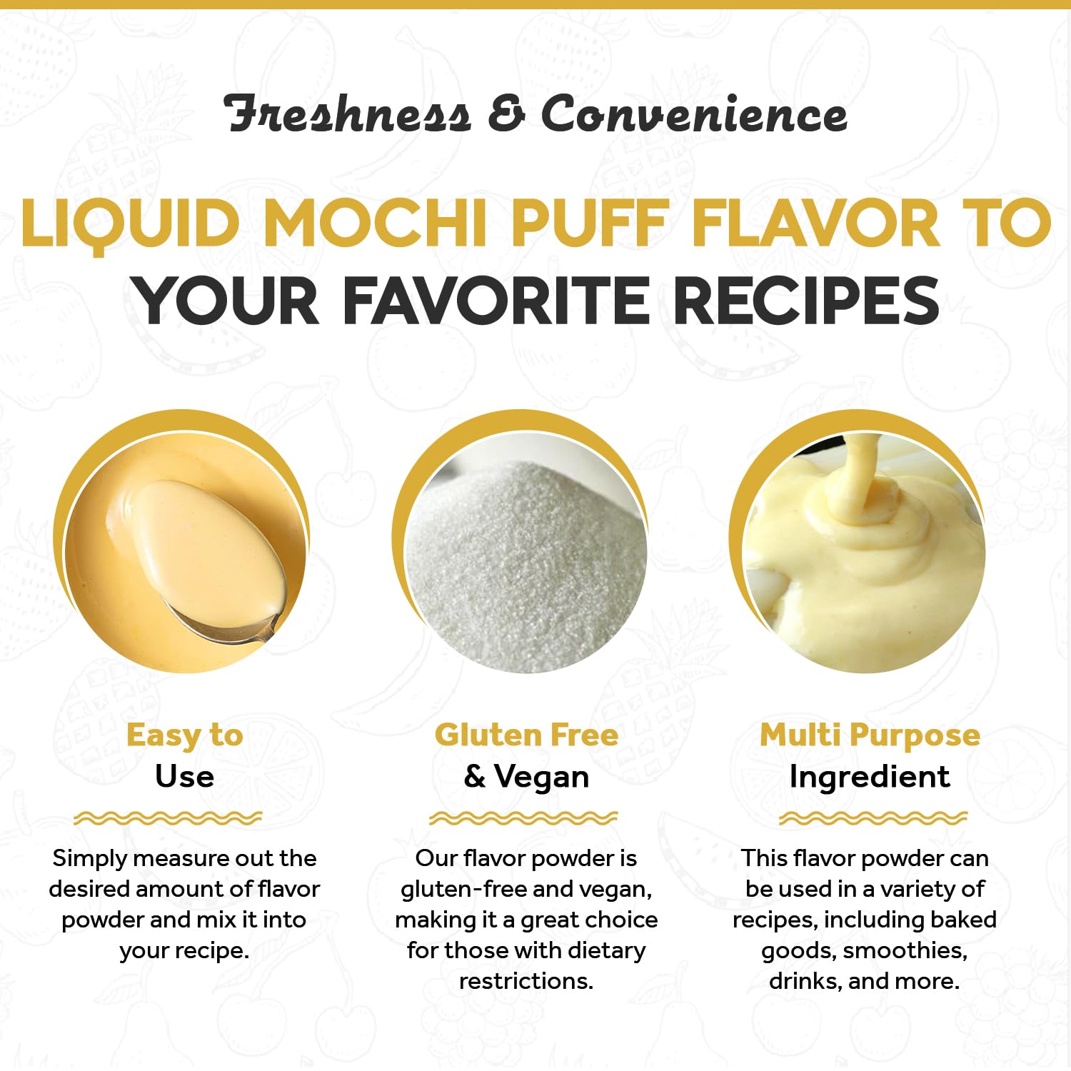- ๐๐๐ฌ๐ฒ ๐ญ๐จ ๐ฎ๐ฌ๐: Simply measure out the desired amount of Mochi Puff Bubble Tea Flavoring Powder and mix it into your recipe. This powder provides all the nutty flavor you need in a convenient form.
