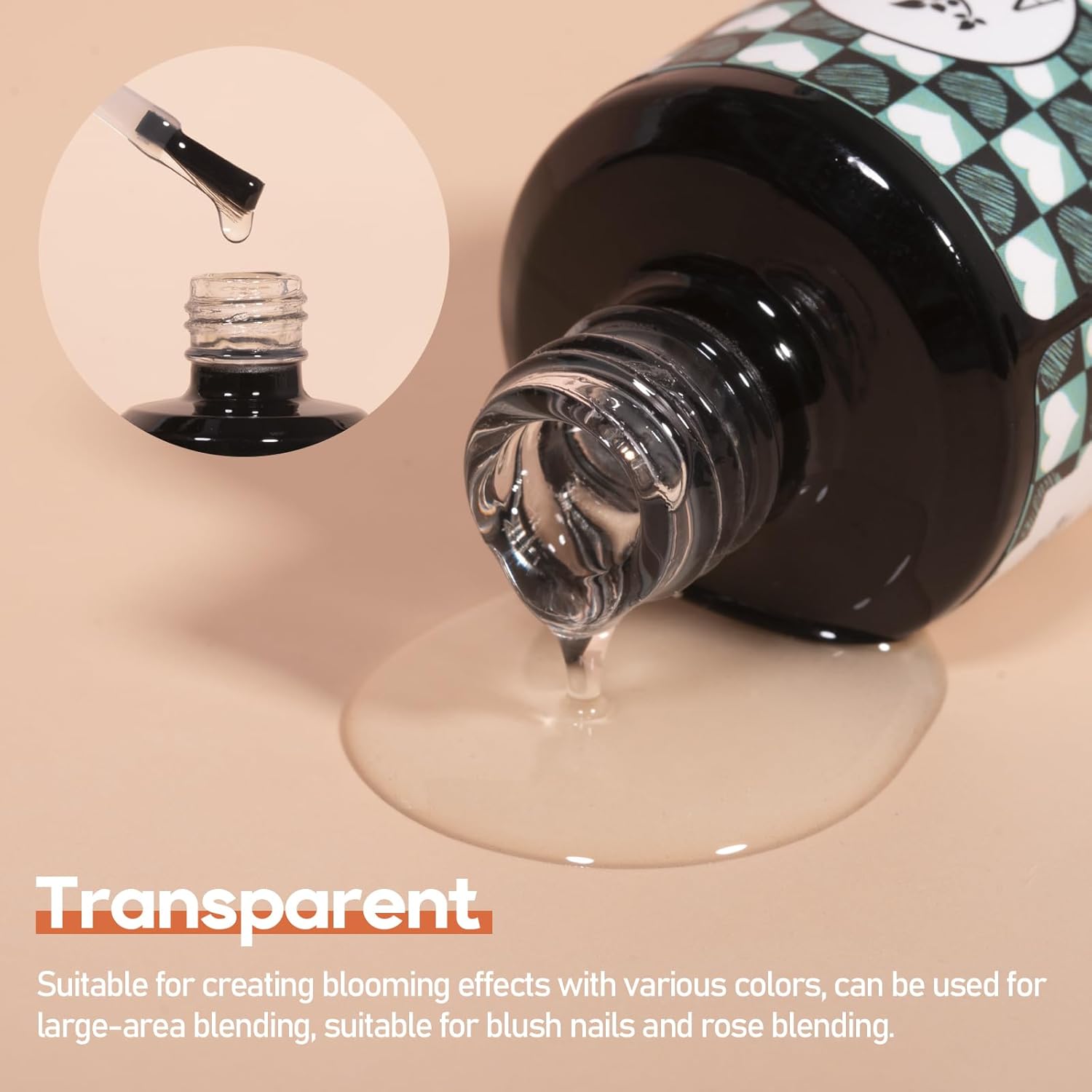 - Easy Application:Clear Blooming Gel suits all nail art systems. Apply blooming gel before color gel, then use nail art brush to bloom out any effect you like.