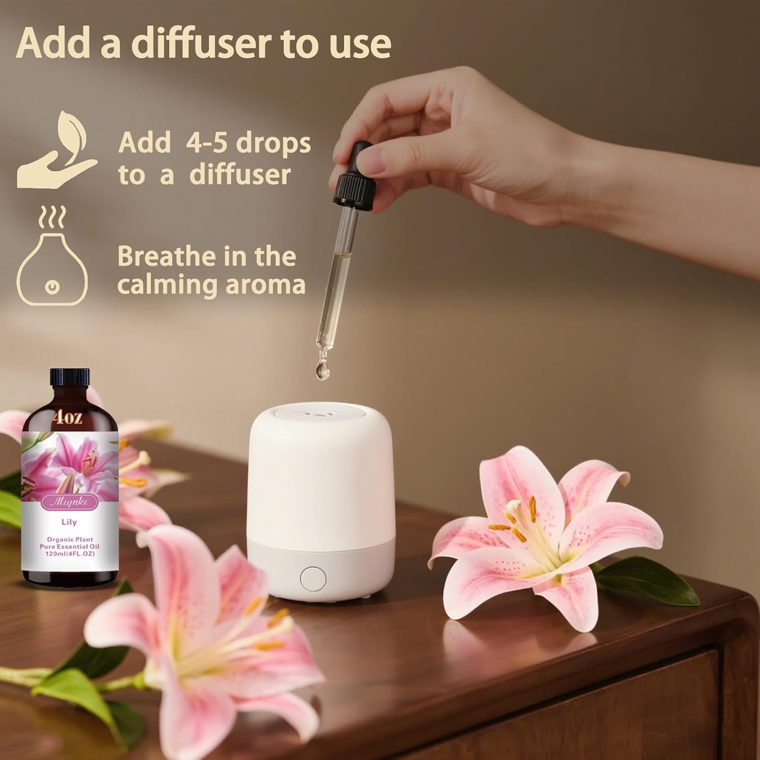 - * You can use multi-purpose essential oils - Lily essential oil is suitable for aromatherapy machines and has many other uses. Use it for aromatherapy machines, humidifiers, home fragrance, spa, cleaning, massage, yoga, DIY candles, DIY soaps, perfume, car fragrance, bath balls, etc.