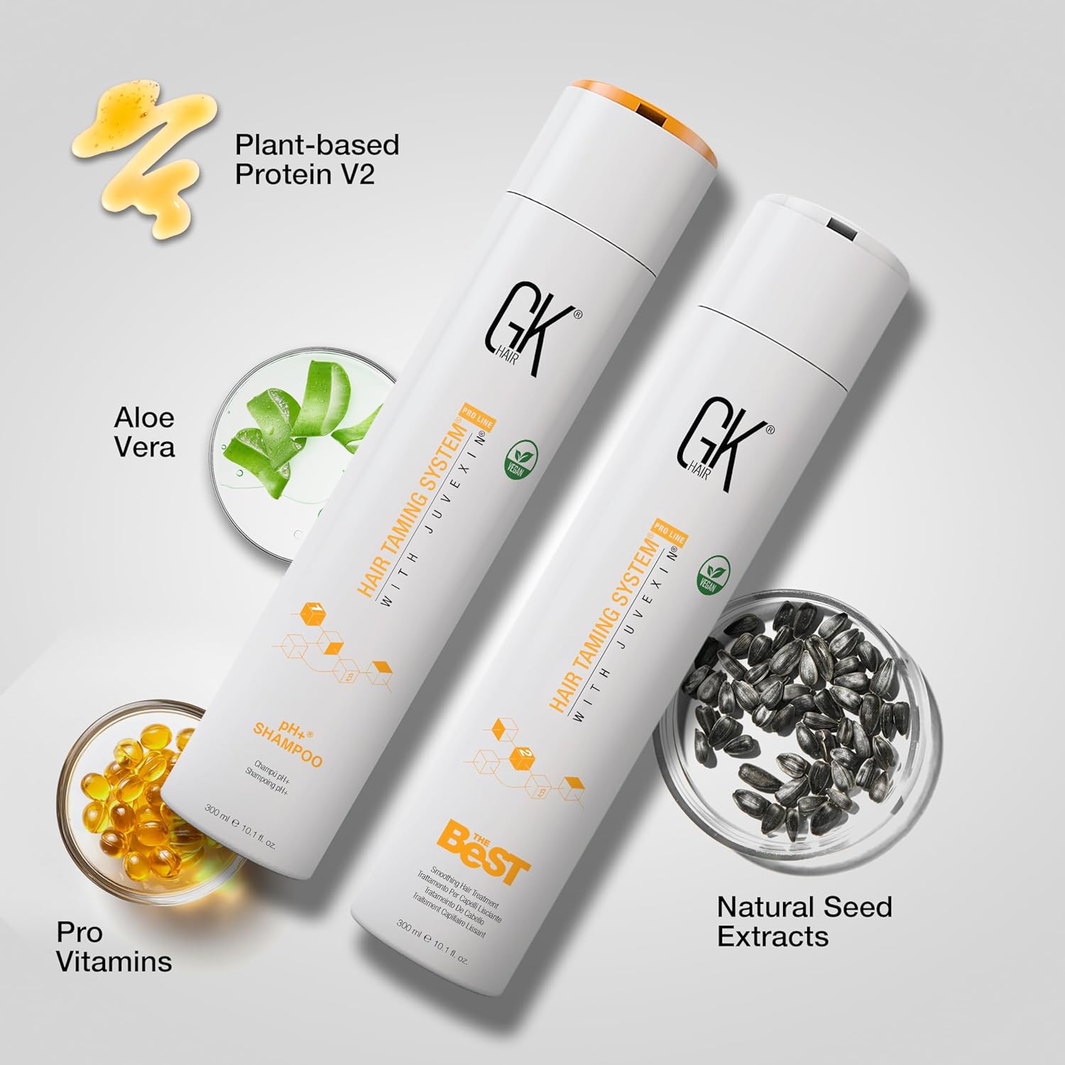 GK HAIR The Best Vegan Keratin Treatment Kit 10.1 fl oz – Pre Treatment Shampoo Straightening Complex for Smooth Silky Frizz-Free Hair Professional Long Lasting Smoothing System