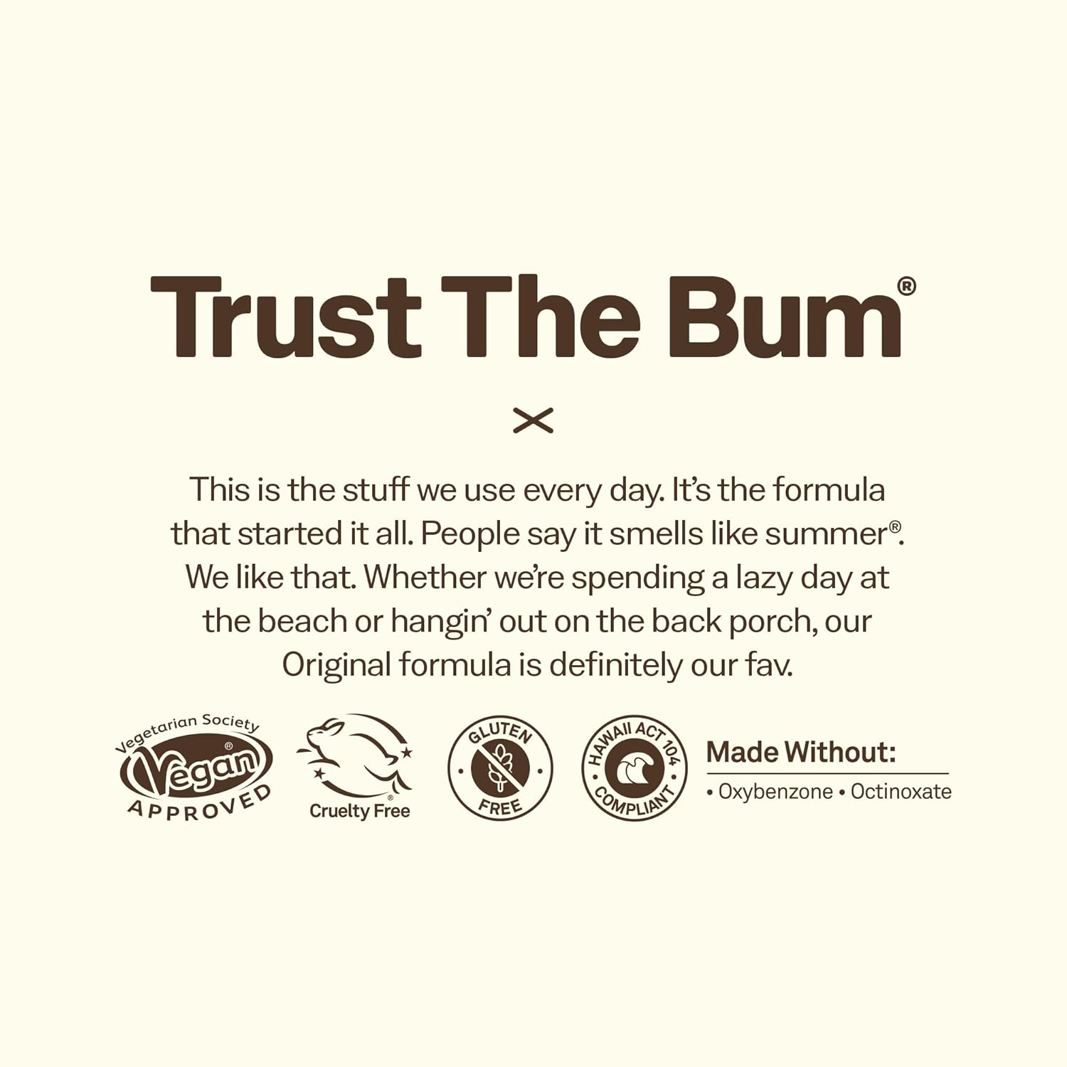 - TRUST THE BUM. What does that mean? It means trust us, the ones who live on the beach and need products that work on the most intense days in the sun. The simple truth is, when you make products to protect the ones you love, you make ‘em better.