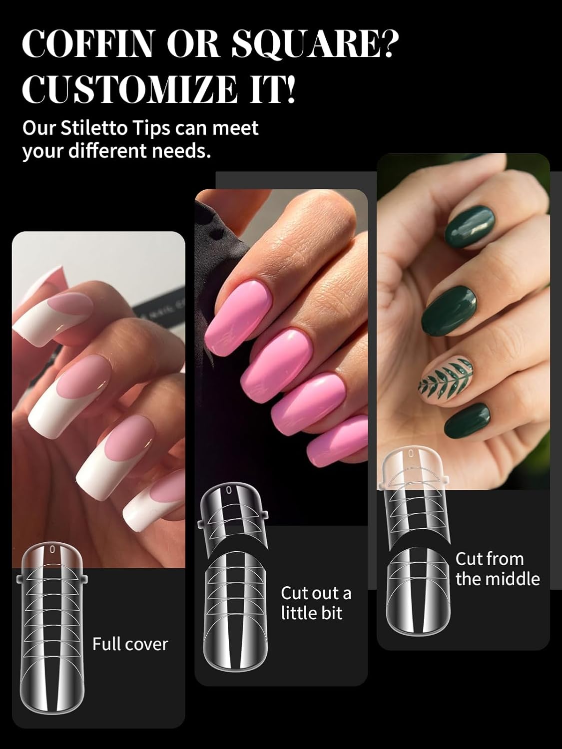 - 【Easy to Use】They are artificial nails forms, used as the nail mold. No glue needed, just brush the acrylic/poly gel into the forms and then place on the nail plate, hold on for a few seconds and cure it. Easy to shape, and pull away easily from the dried acrylic nails, leaving a very shiny nail.