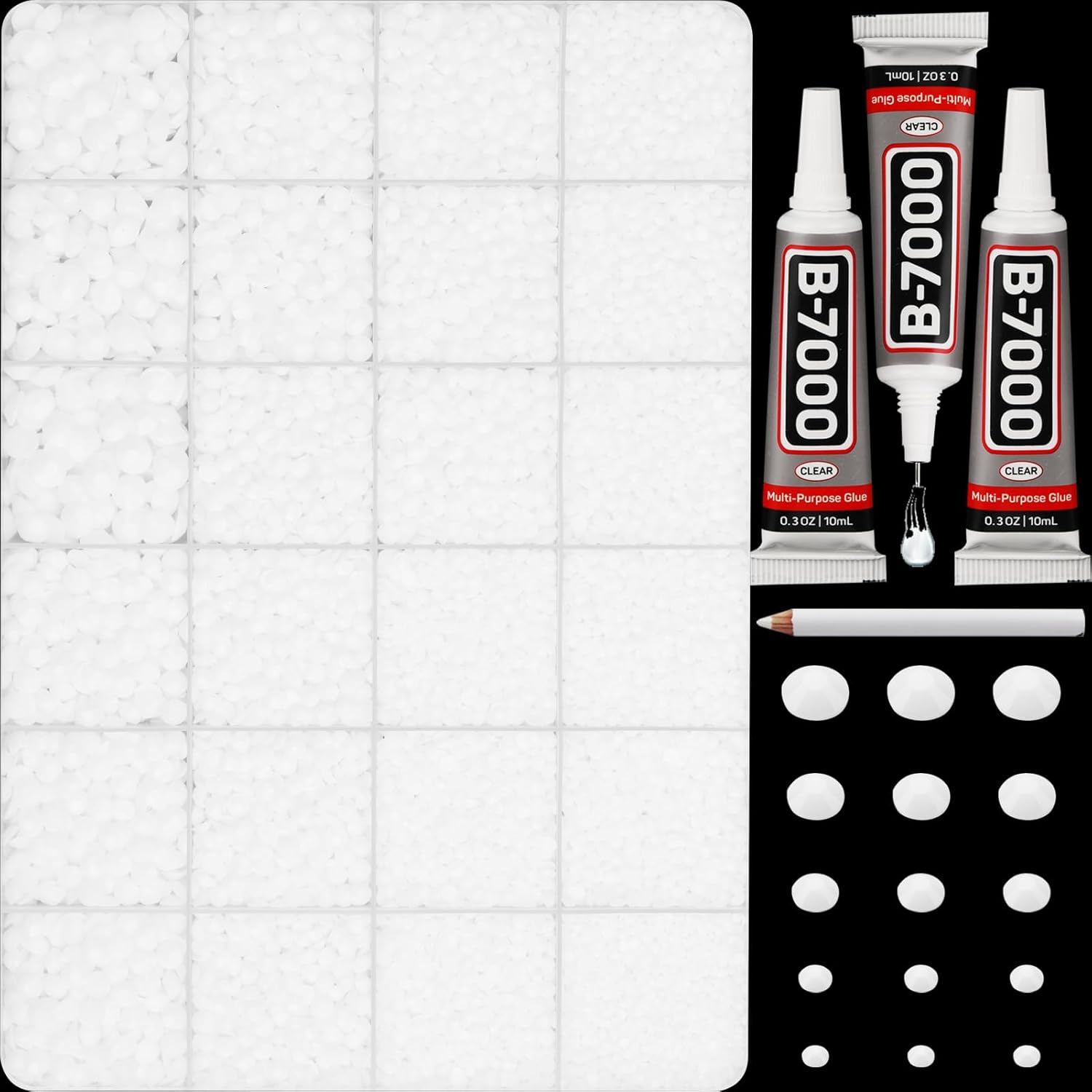 30000Pcs Resin Rhinestones Kit for Crafting Bedazzling, Solid White Flatback Gems Diamonds for Crafts Clothes Shoes Fabric Tumbler Jersey, Flat Back Jewels Bulk Assortment with b7000 Glue