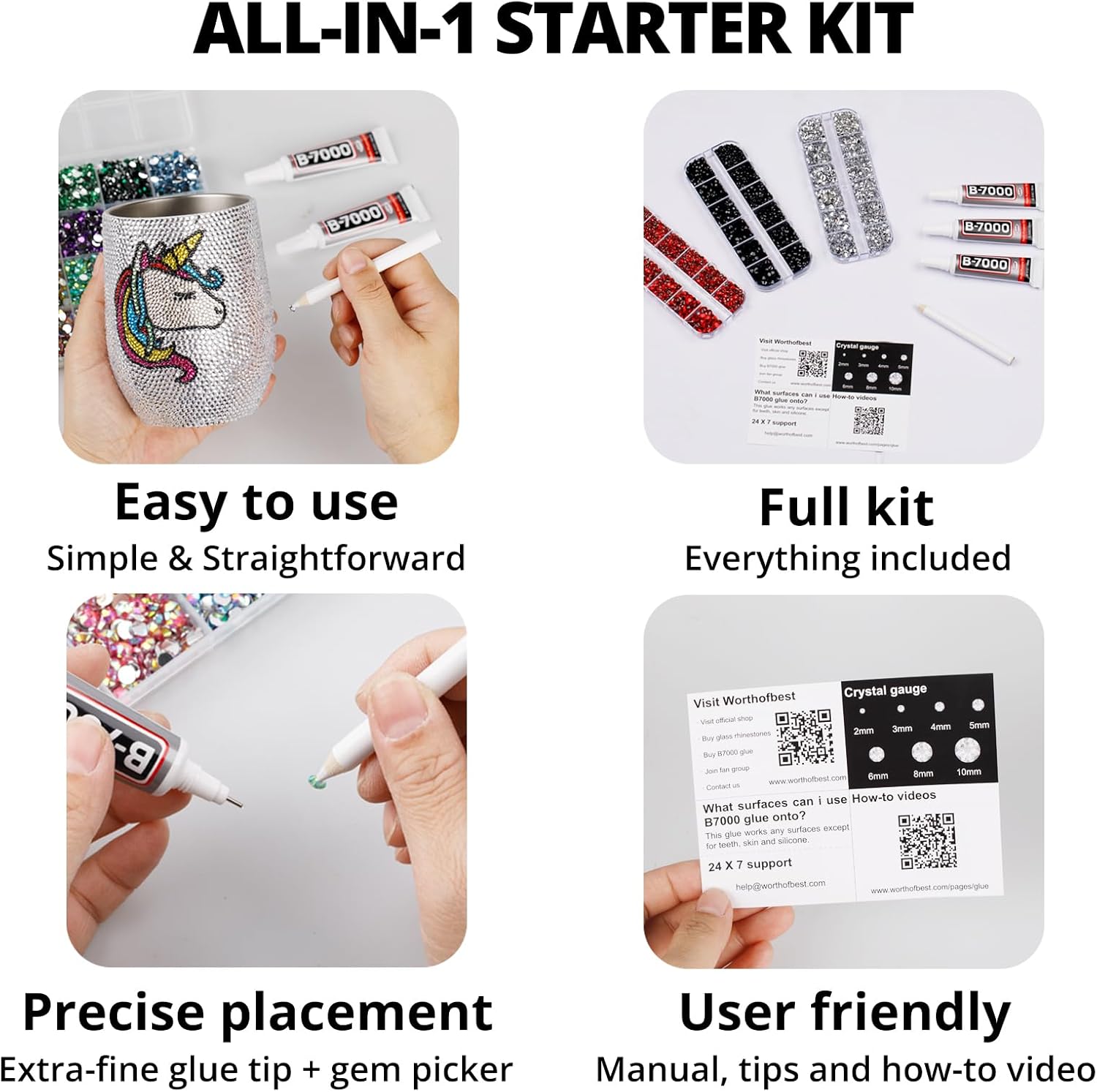 - Easy to Use -- This kit is designed to be straightforward, and versatile for various crafting projects. The manual is user-friendly and beneficial for both novice and experienced crafters. The complete and durable tools are suitable for precisely applying rhinestones to create intricate designs, with no additional tools required. Rhinestones are easy to apply and remove. The sturdy container with 32 grids keeps all rhinestones organized by size and color, making them easy to store and access