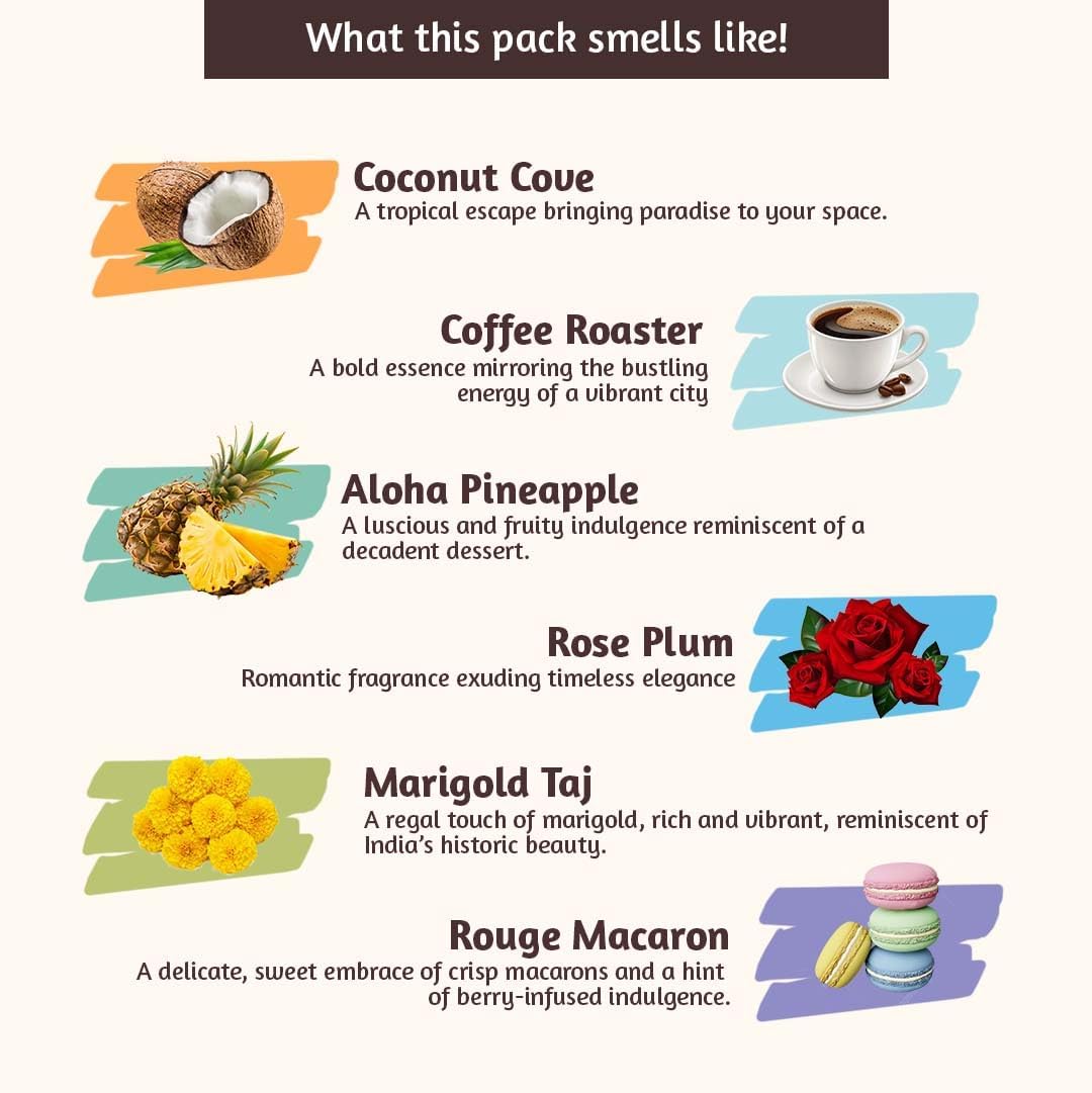 - FRAGRANCE NOTES – A refreshing blend of fragrances complemented by signature notes like Coconut Insense Sticks, Coffee incense, Rose inscents. Ideal for spiritual practices, they infuse any space with an uplifting, comforting aroma.
