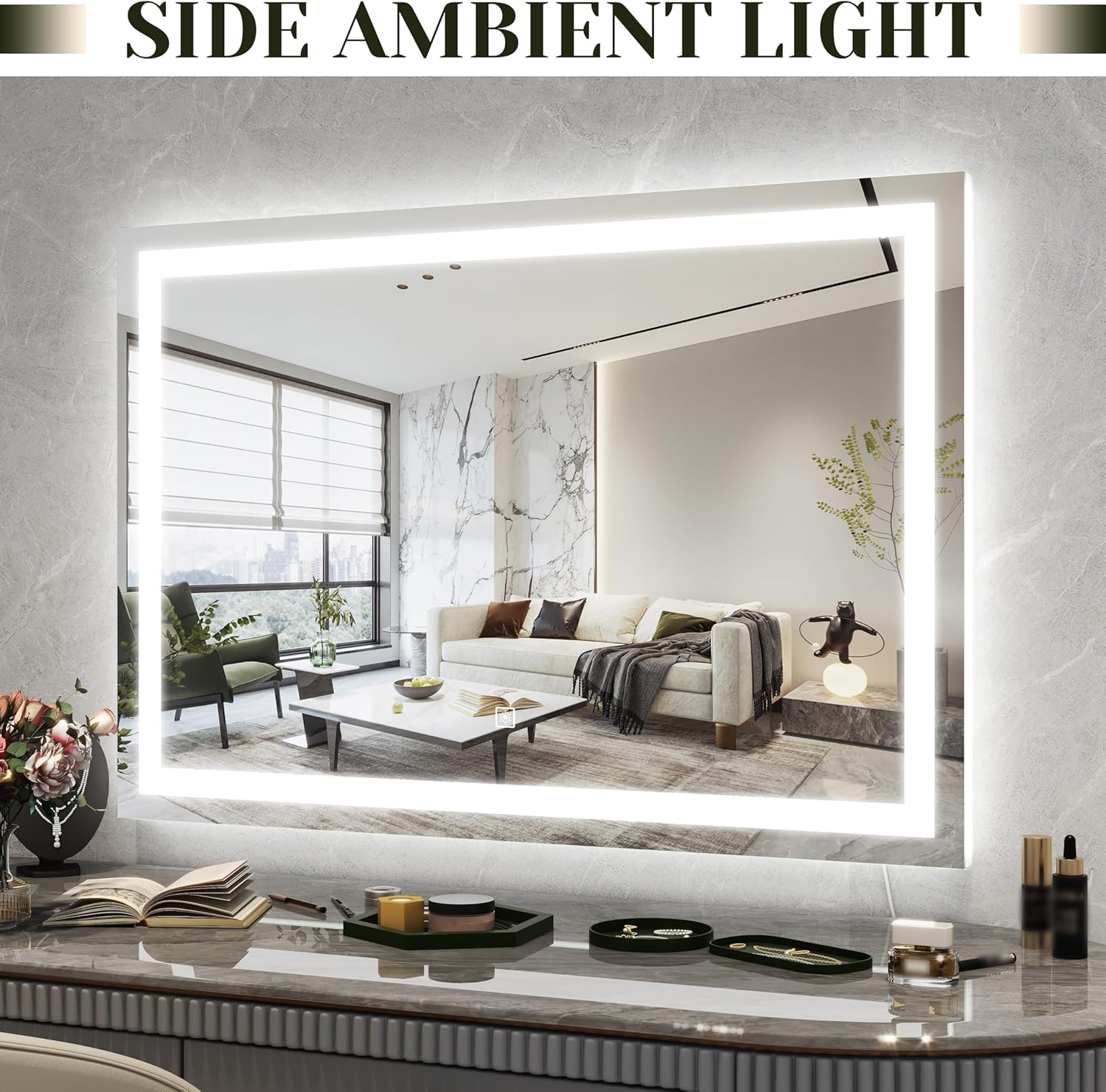 - 【Extra Large & Space - Saving Design】 View full-body outfits & makeup details in one glance with our 30% larger viewing area than standard mirrors. Our 32" x 22" LED vanity mirror also offers a space - saving dual - installation option. The lighted mirror comes with a detachable base for desktop use or wall mounting.
