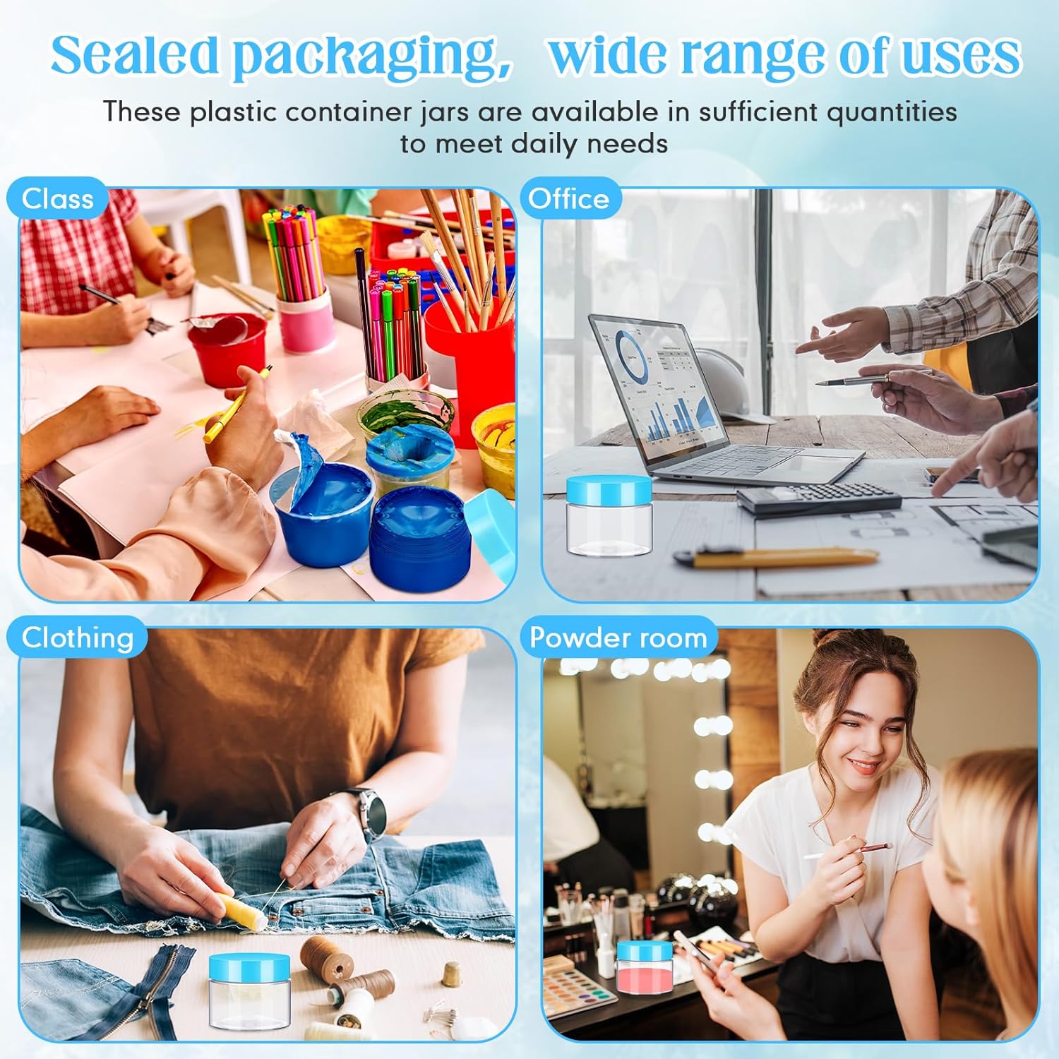 - Multifunctional Containers: you can use these plastic jar containers with lids to store your personal beauty products for travel, ideal to dispense; You can also use it to store homemade sugar scrub cream, body lotions, bath butter soap gifts, body butters and hair moisturizers, small and easily lost jewelry, small crafts like beads, seasonings, acrylic paints, flower seeds, rhinestones etc., which will keep your things organized and make your life more convenient