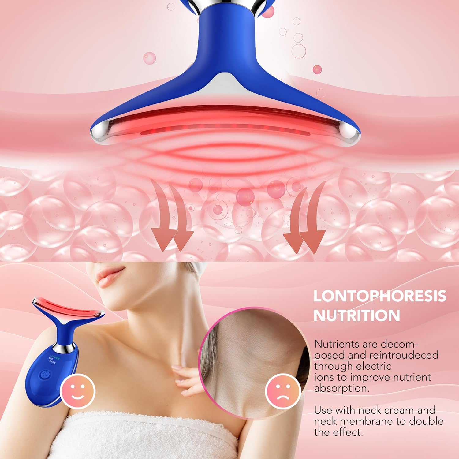 - The uniquely curved Arc massage head effortlessly glides along your face, helping to improve absorption of creams and lotions
