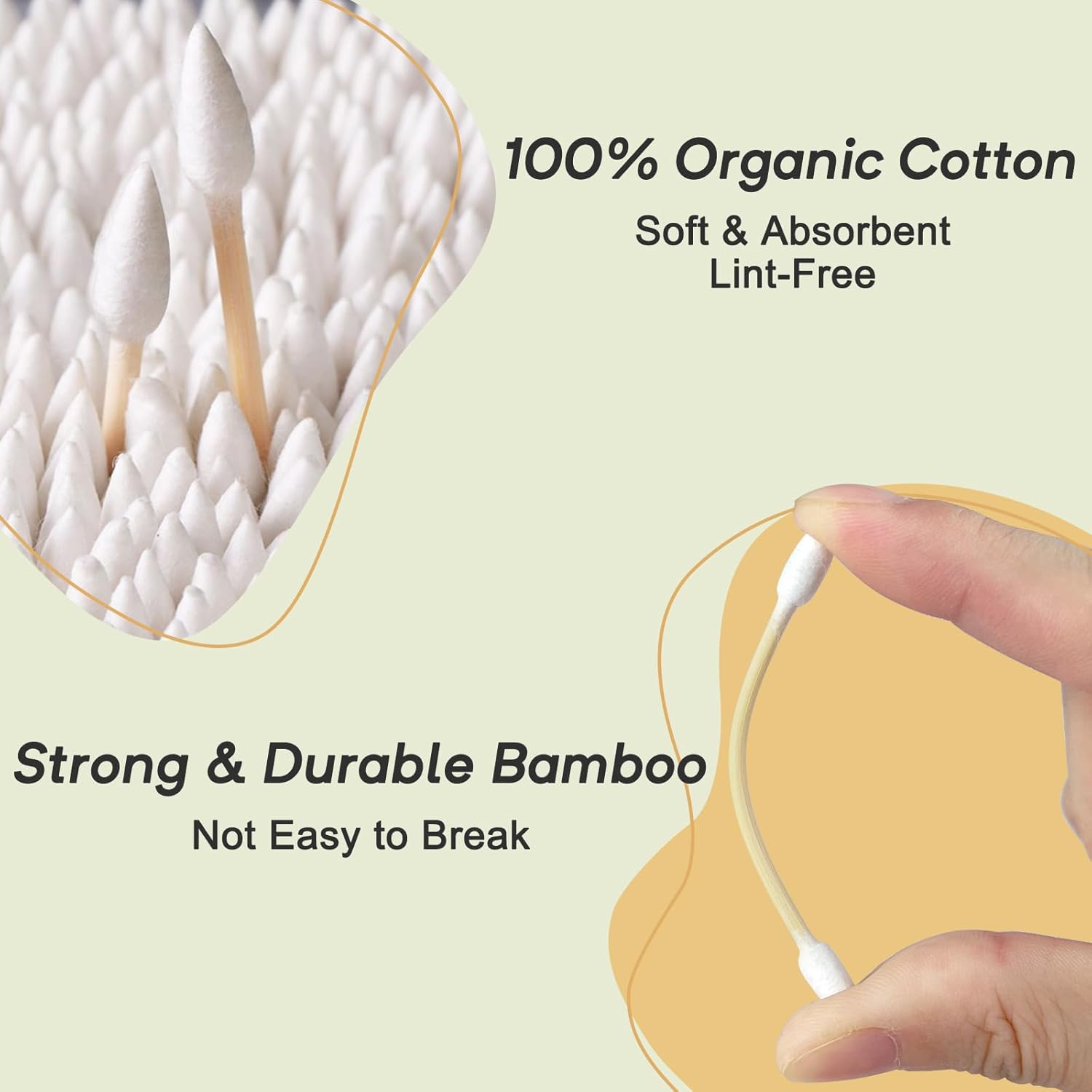 Organic Cotton Swabs 1000 Count in Storage Box, Double Pointed Cotton Swabs with Durable Bamboo Sticks, for Nail, Makeup, and Personal Use