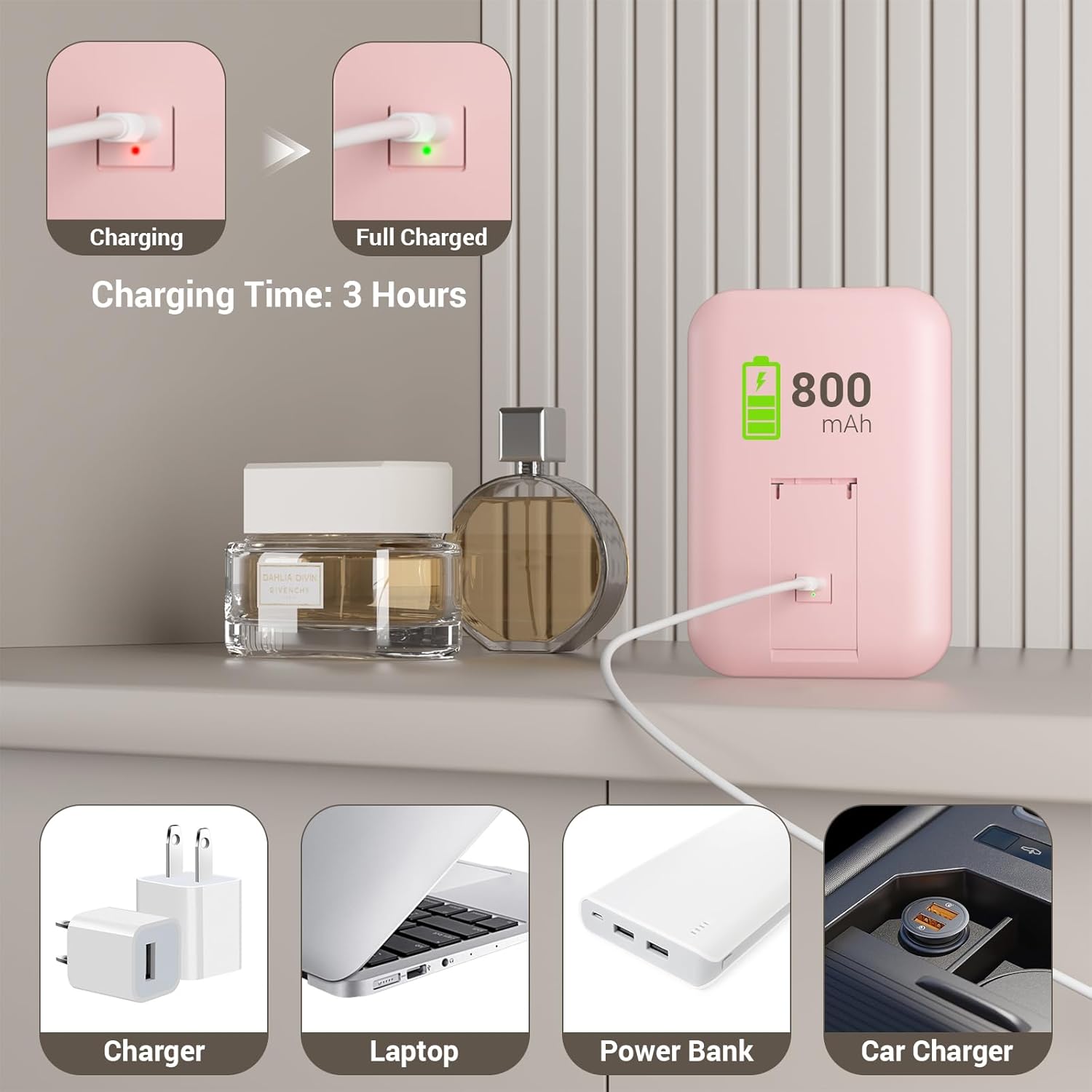 - 【Rechargeable LED Mirror】The small mirror features 32 built-in high-brightness LED beads and an 800 mAh battery. A full charge takes only 3 hours and it can illuminate for 6-54 hours
