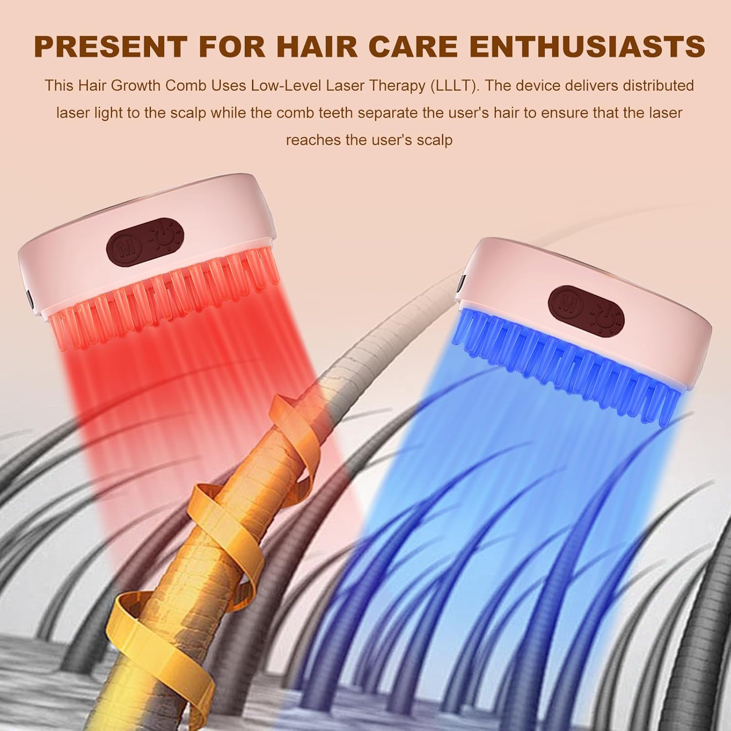 - 【Easy to Use】The Laser Growth Comb is a Portable device that emits laser light and is designed to promote hair growth in women and men. The device delivers distributed laser light to the scalp while the comb teeth separate the user's hair to ensure that the laser reaches the user's scalp. One-button operation, easy to use, comfortable to hold.