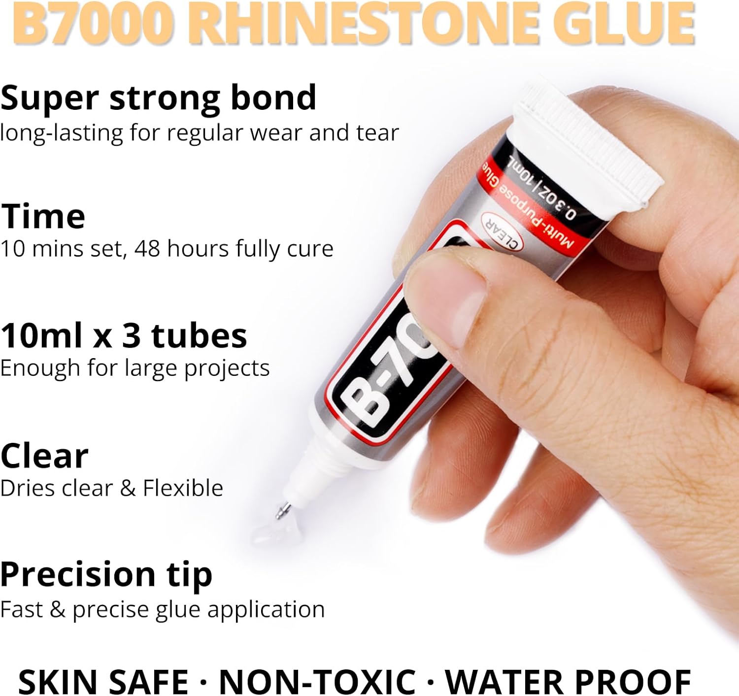 - B7000 Clear Glue for Half Pearls -- B7000 glue has strong adhesion and dries clear, waterproof when dried, non-toxic and harmless to the skin. The glue has a precision needle for easy application, they can be applied precisely