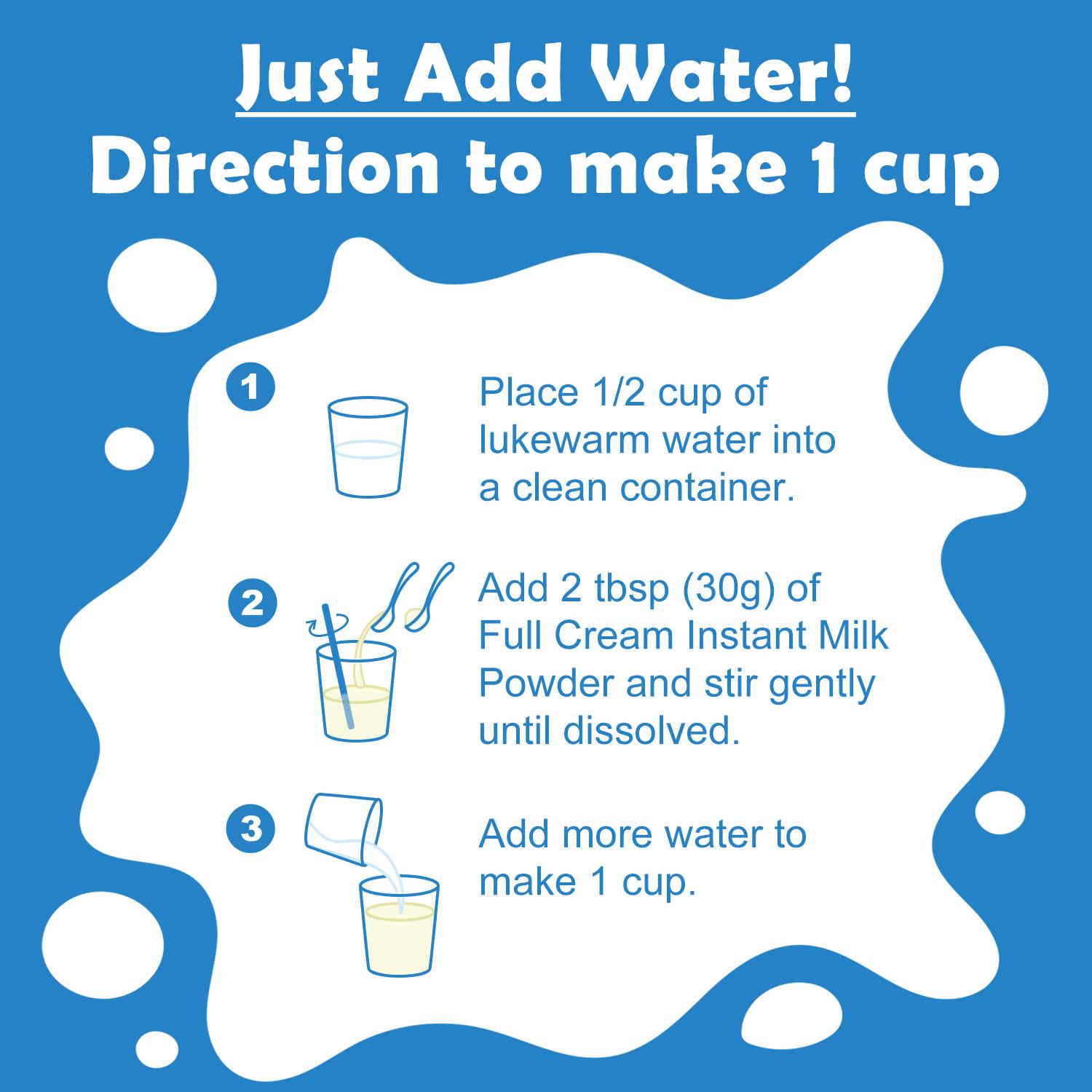 - Just Add Water. Easily mix with water to create smooth, full-bodied milk or enhance your favorite recipes. Perfect for coffee, baking, and cooking, offering a practical alternative to fresh milk anytime.