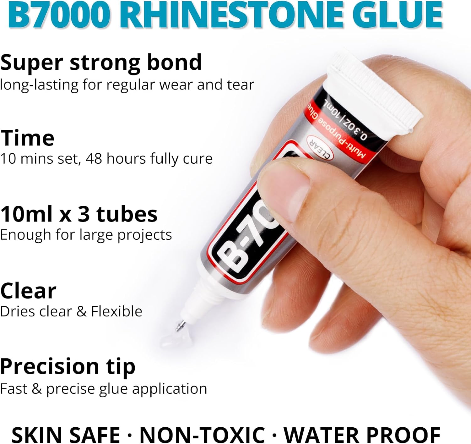 - B7000 Clear Glue for Half Pearls -- B7000 glue has strong adhesion and dries clear, waterproof when dried, non-toxic and harmless to the skin. The glue has a precision needle for easy application, they can be applied precisely