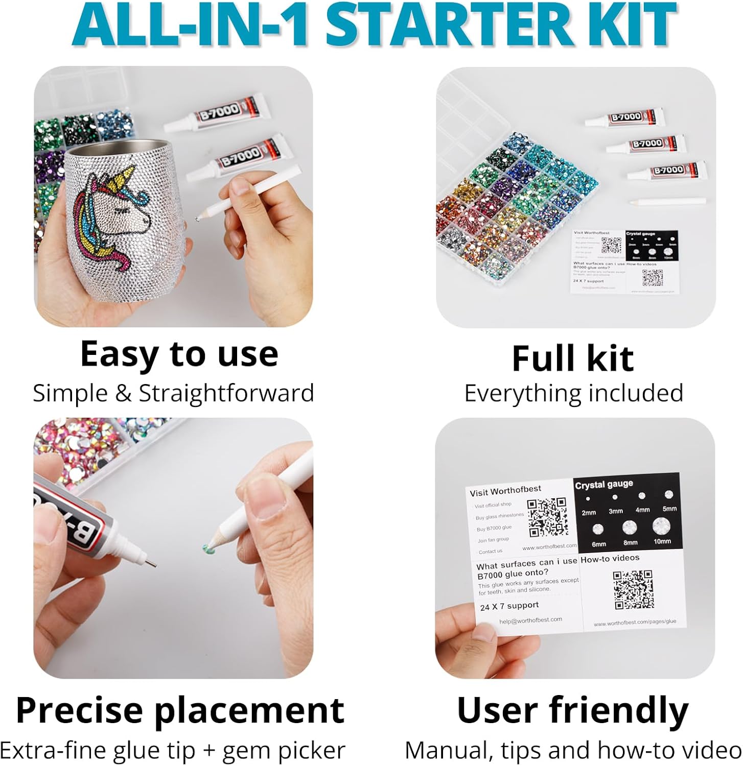 - Package Content with Tool (pickup pen and manual) -- The bedazzler kit Package includes 1 jelly turquoise ab rinestones set with 24 grids, approx 30000 pcs of 2-6mm bling-out resin rhinestones