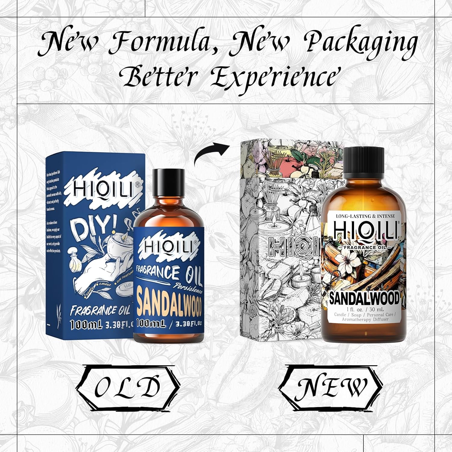 HIQILI Sandalwood Fragrance Oil for Home Diffuser, Luxury Hotel Scent, Perfect for DIY Candle & Soap Making, Add to Body Lotion - 1 Fl Oz