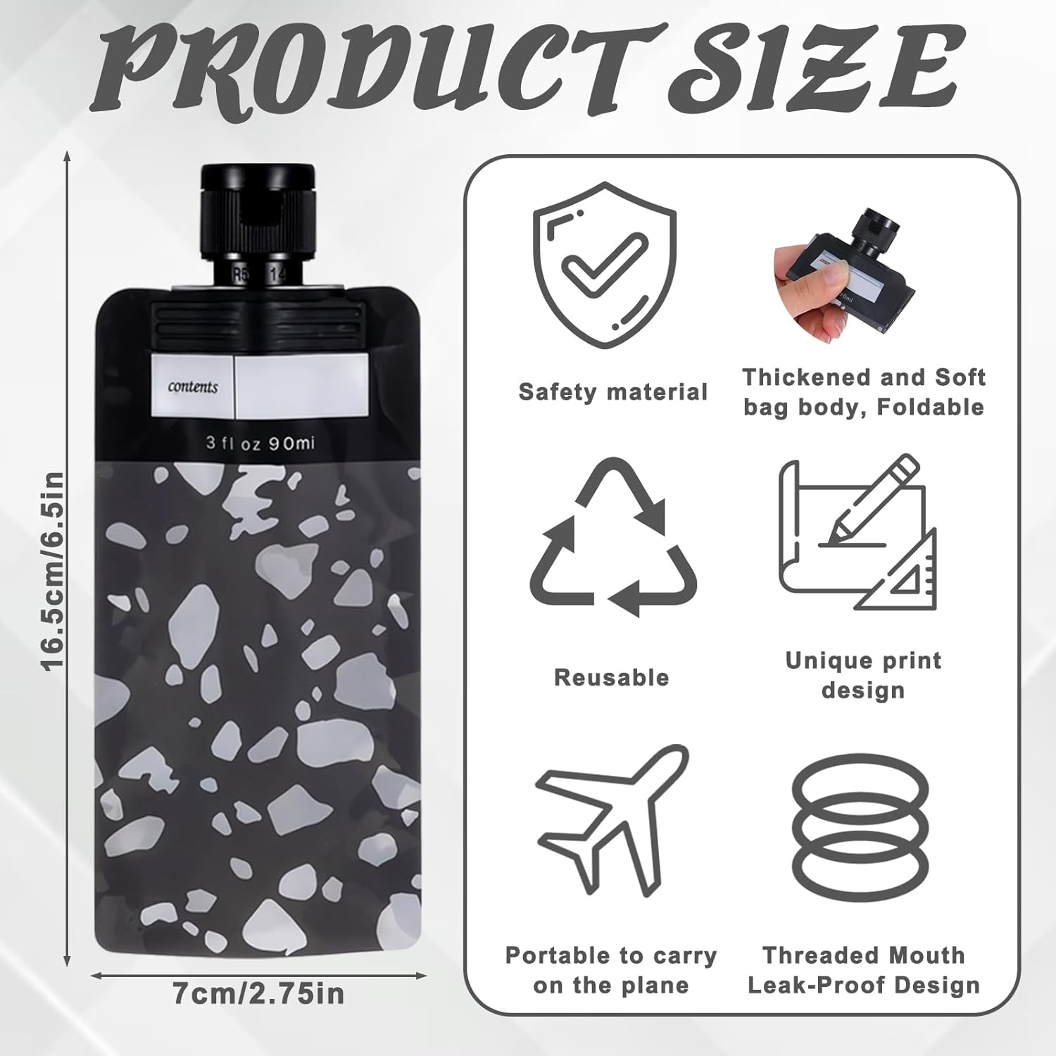 3 oz 6 PCS Refillable Size Containers Leak Proof Empty Squeeze Pouches Travel Shampoo Containers Pouches Travel Pouches for Toiletries for Shampoo Conditioner Face Cream Hand Soap(Black)