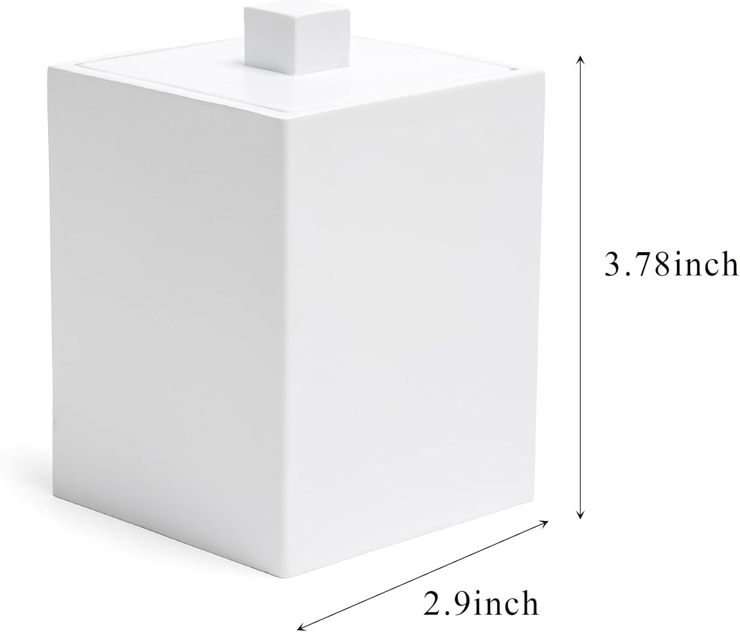 - IDEAL SIZE HOLDER: holder measuring is 2.9” x2.9”x 3.78” (L X W X H), ideal storage size of q-tips, cotton swabs, cotton balls, cotton buds, cotton pads, cotton rounds, flossers, makeup sponges, bath salt or hair ties and bobby pin.