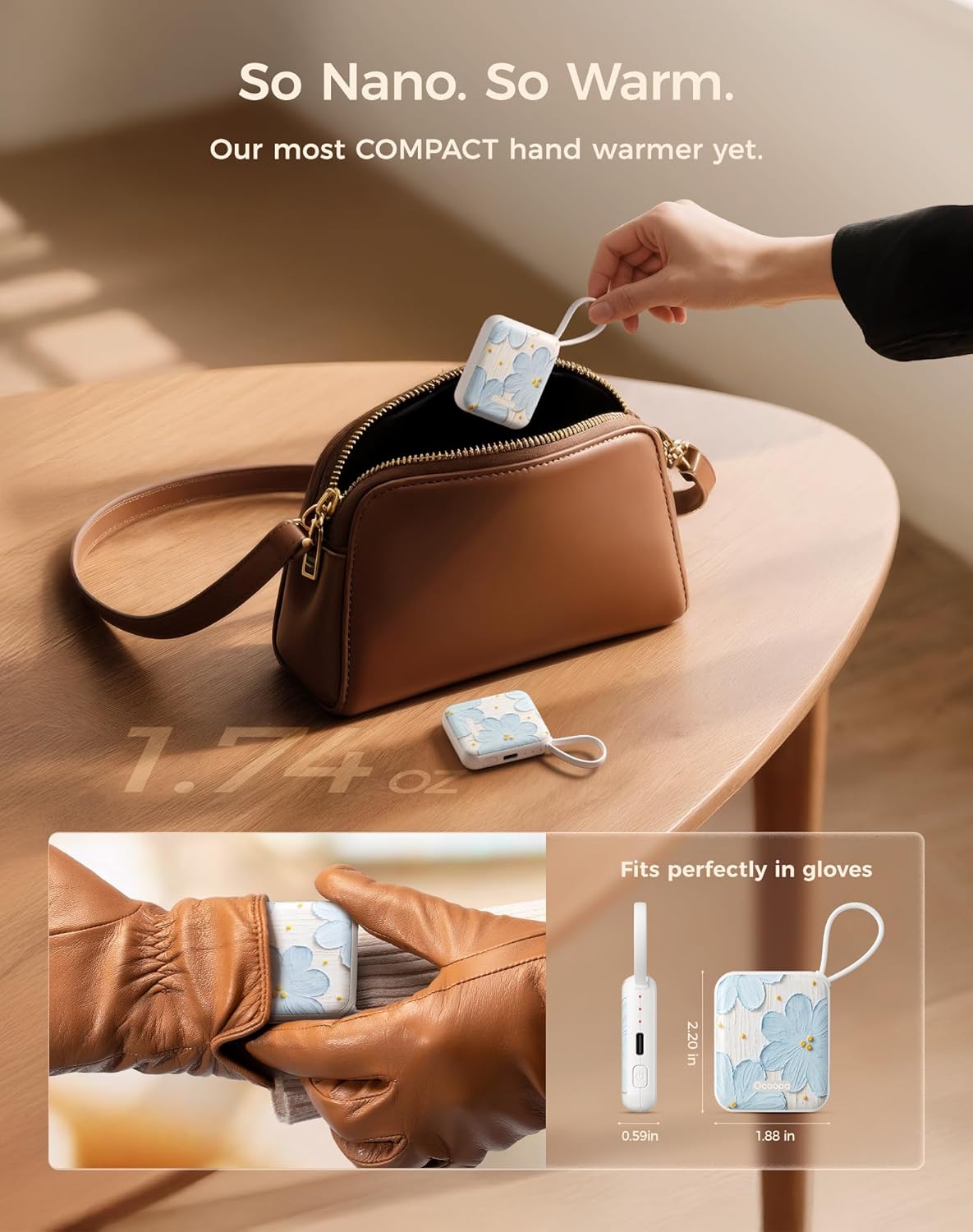 - Ultra-Nano Size – Designed for Her Hands: This ultra-slim rechargeable hand warmer smaller than your palm, lighter than a lipstick. UT5 Nano fits perfectly in gloves, pockets—even wallets. Tailored for women who love warmth without the bulk.
