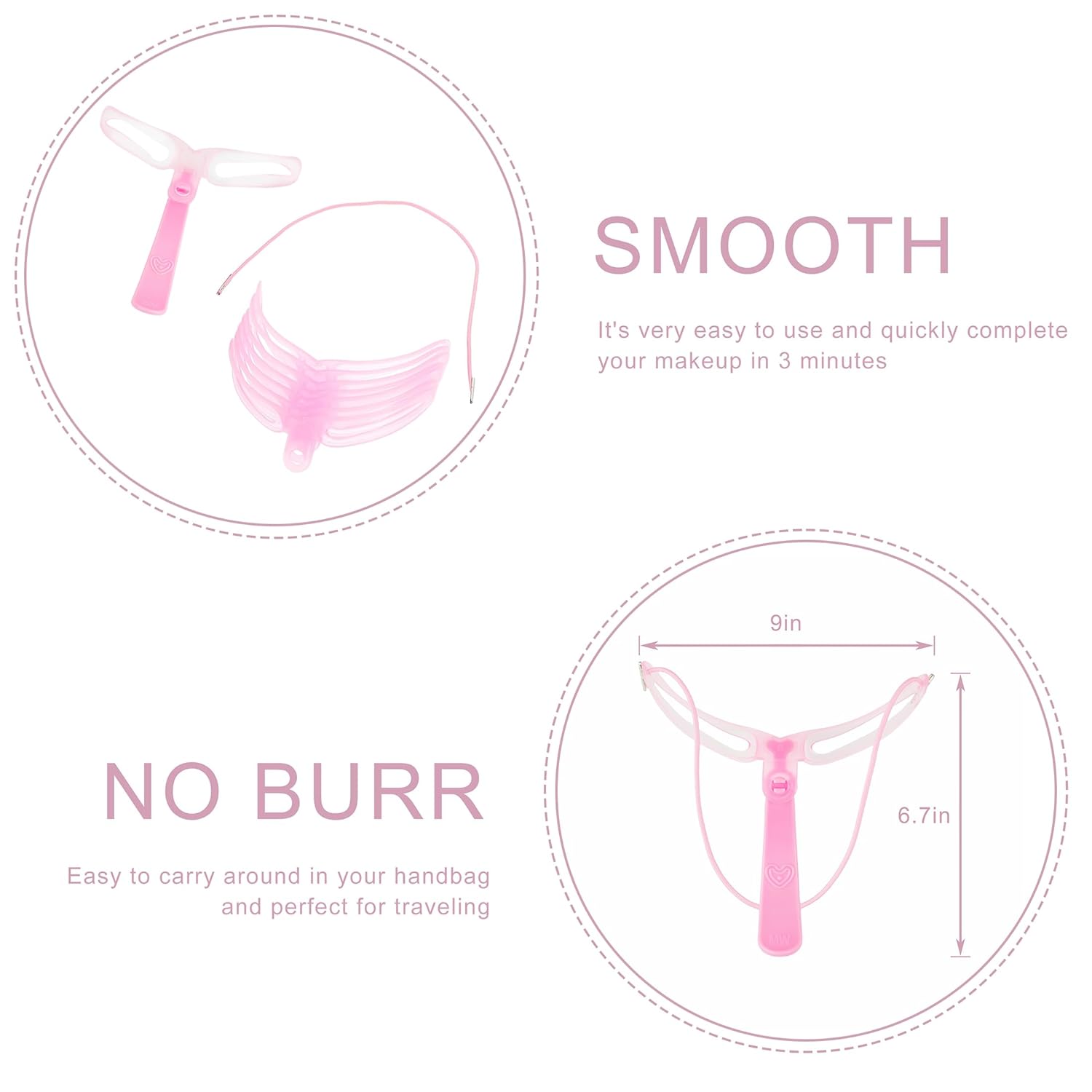 - Usage: 1. Wearable thrush: wear, with adjustable head rope to liberate hands, better control eyebrow card. 2. Hand-held thrush: The strap use for stabilize the eyebrow stencils and the handle use for adjust the position of the eyebrow stencils, which with handle and eyebrow card connection, easy, natural draw eyebrow.